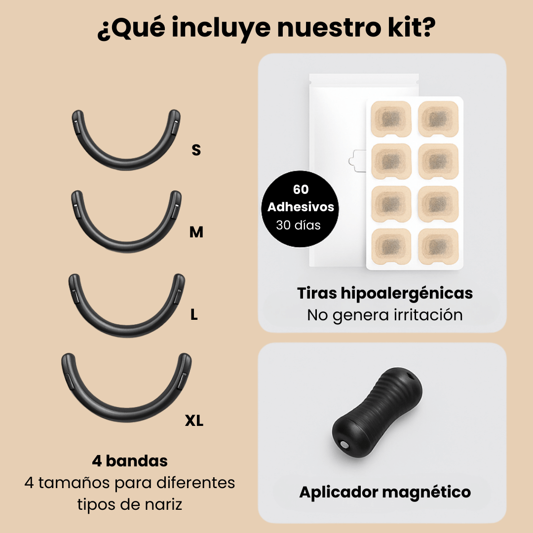 Las bandas magnéticas dilatan suavemente las fosas nasales al colocarse en la parte superior de la nariz. Esto facilita la respiración y mejora el flujo de aire de inmediato.